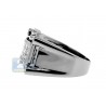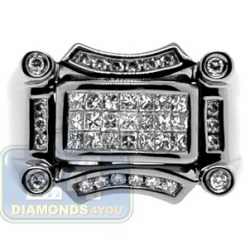 This cool and handsome men's jewel combines the gleaming beauty of black finished gold and icy white diamonds for a truly elegant effect! The center piece of the ring is expertly handset with three dazzling rows of princess cut diamonds surrounded by shimmering round shaped brilliants. Each stone is absolutely natural, with G-H color and SI1-SI2 clarity. What a masculine signet with the eye catching effect!
