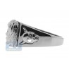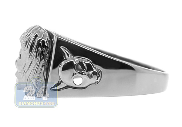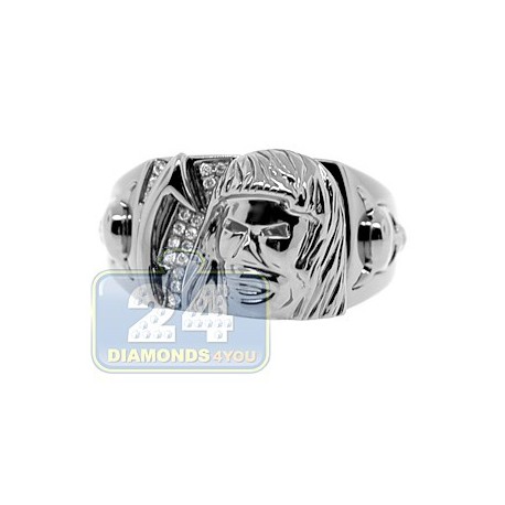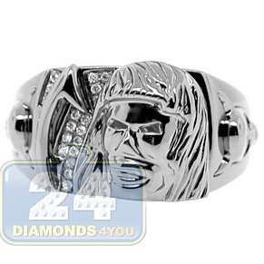 Are you ready for something unique and unusual? The center of this signet for men features a Jesus face and rows of icy white diamonds totaling 0.06 carat. Meanwhile, two devil silhouettes are places on the sides of the ring. This jewel is artfully designed in 14k white gold with black pvd finish to add some extra mystery to its look! What an extraordinary contrast of materials and symbols of good and bad!