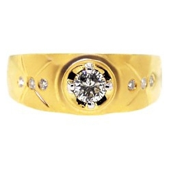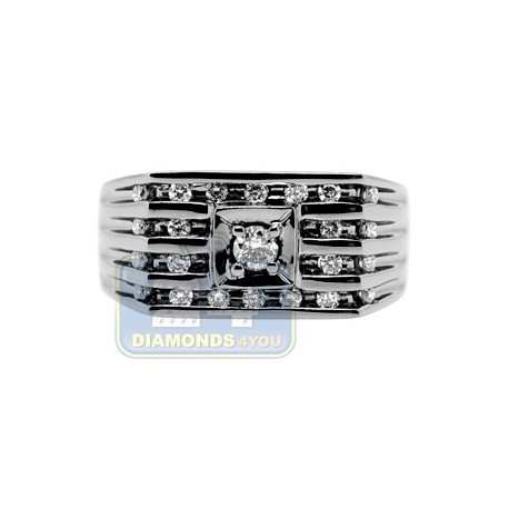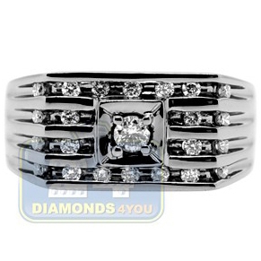 This impressive men's ring will make everyone look twice! Its generous size is masterly enhanced by a large icy center round cut diamond surrounded by smaller precious stones. All round cut brilliants are weighting 0.48 carat in total and have G-H color with SI1-SI2 clarity. The black rhodium finish makes the piece look so handsome and unique!