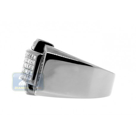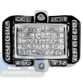 Masculine and extremely handsome, this bold ring is a must have for today's fashionista especially if you a fan of black colored jewelry! Our signet is expertly designed in 14k white gold with special black pvd finish, accented with 0.79 carat princess cut invisible set diamonds in the center, and rows of 0.33 carat round cut stones on each side. These brilliants feature H-I color with SI1-SI2 clarity. Our impressive signet will surely bring elegance and years of enjoyment to its owner!
