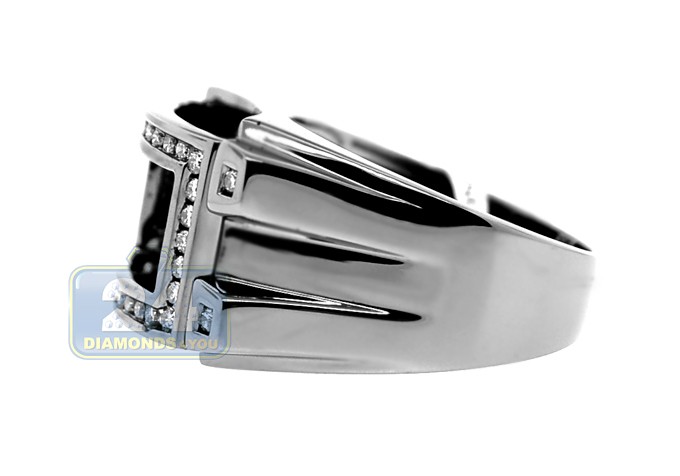Stylish combination of shapes and colors! Our impressive signet for men sparkles with genuine princess and round cut diamonds totaling 1.15 carat. The center area is invisibly handset with 0.73 carat princess brilliants and sides are accented with natural 0.42 carat round shape diamonds. To add more uniqueness and sophistication, the jewel is finished off with the impressive black pvd coating.