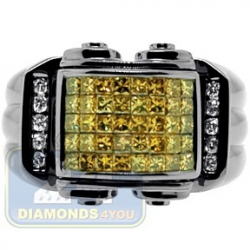 Black PVD 14K Gold 1.34 ct Yellow Princess Cut Diamond Mens Ring
