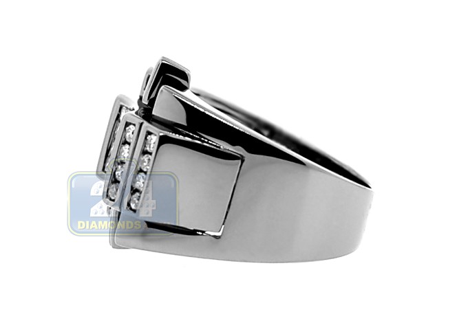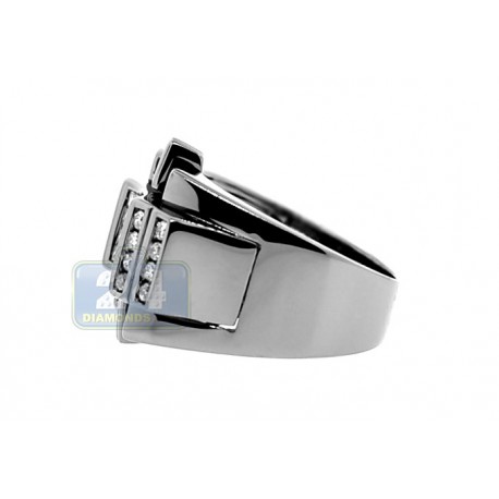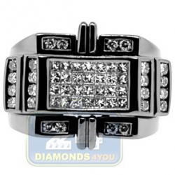 Add a vibe of mystery to your style with this stunning signet! Shimmering genuine princess cut invisible set diamonds are accenting the center part of the ring, and round cut stones are beautifully encrusted on each side. The unique black pvd finish is added to 14k white gold metal to contrast such a handsome design!