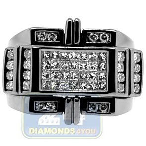 Black PVD 14K Gold 1.41 ct Princess Round Diamond Mens Ring