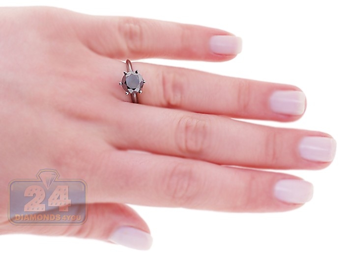 14K Gold 3.02 ct Black Diamond Solitaire Womens Engagement Ring