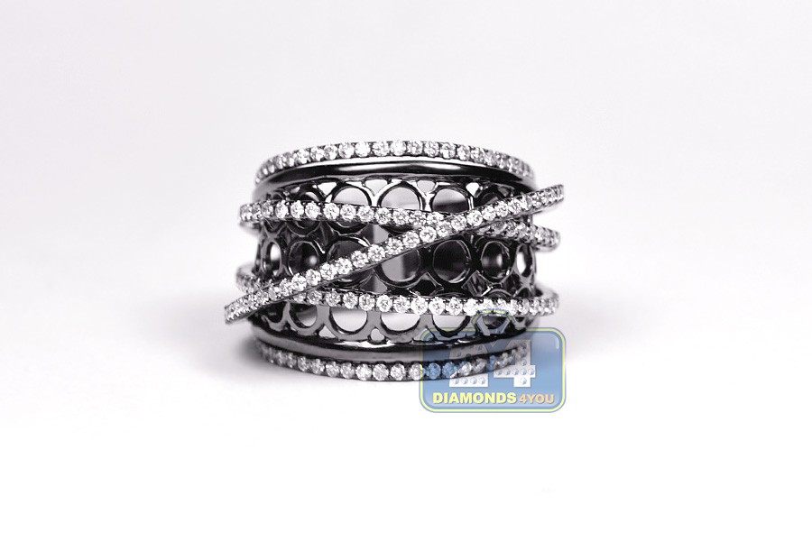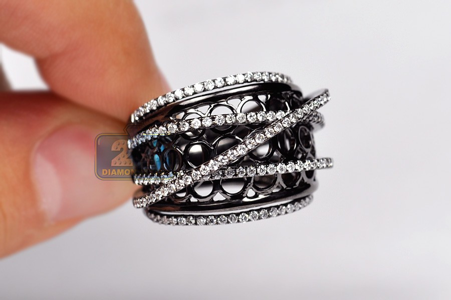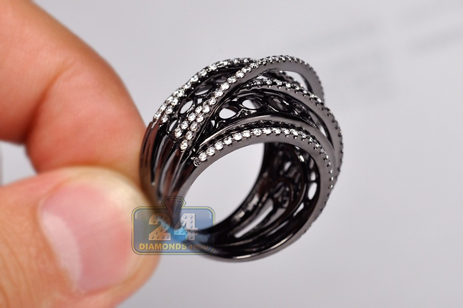 Black 18K Gold 1.18 ct Diamond Womens Crisscross Ring