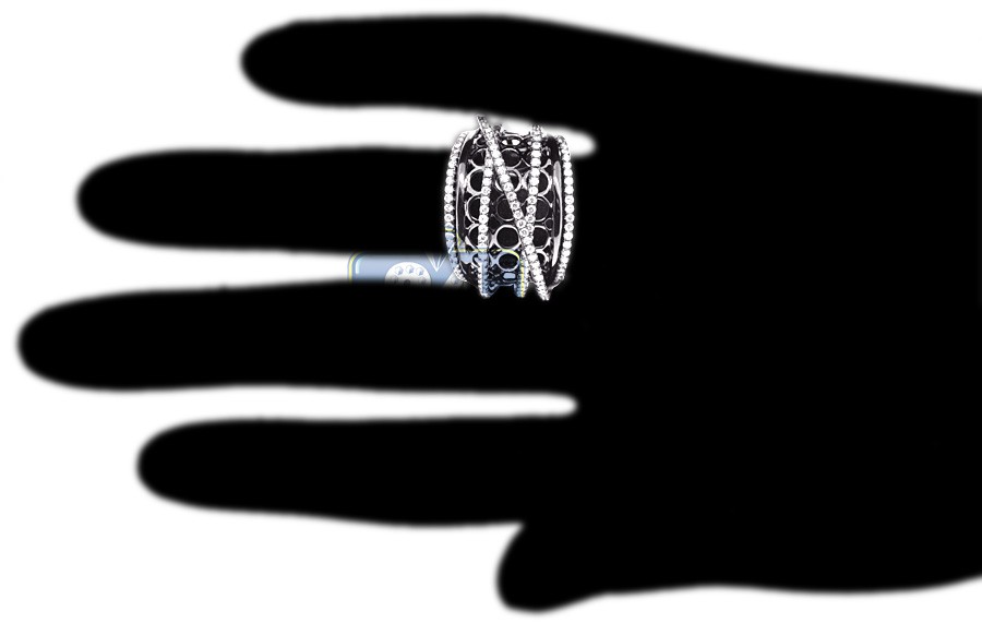 Make a fashionable statement with this diamond ring! It's created from cool 18k white gold covered with long-lasting black PVD. The piece of jewelry is encrusted with 1.18 carat of white brilliant-cut diamonds. This magnificent diamond band will make her day and illuminate her finger!