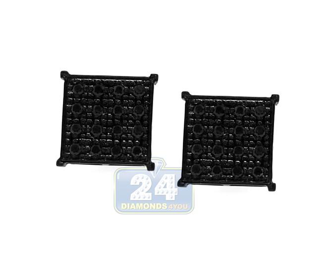 Black 10K Gold 0.63 ct Diamond Mens Square Stud Earrings