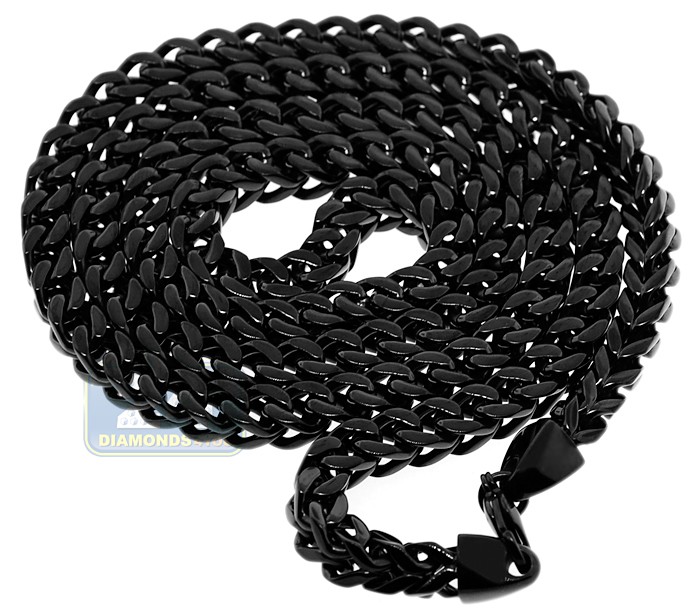 Magnificent black pvd stainless steel franco chain for men. Necklace features classic franco links with a smooth design. It measures 100 in width, and available in 36 or 40 inches in length. This bold men's franco chain is a great jewelry piece that can be worn on any dressy occasions or everyday. It's a unique statement of your sense of style.