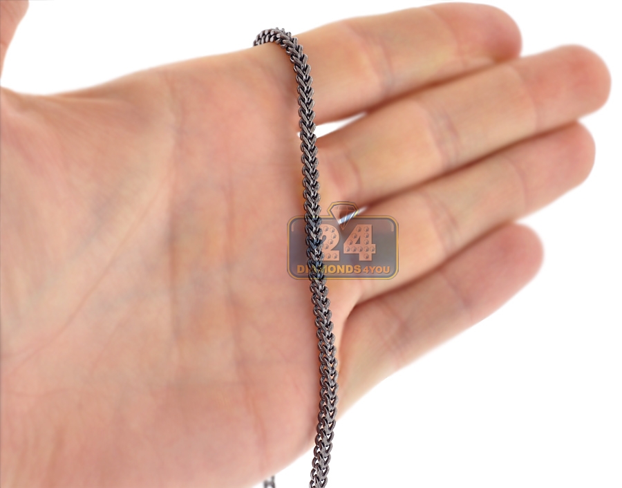 Our magic franco chain will definitely suit your style! It's professionally made of 925 sterling silver, and covered with black PVD that helps prevent tarnishing and gives a bright color. The necklace measures 3 mm in width, available in 24, 26, 28 or 30 inches in length; and secures with a safe lobster claw clasp. Feel very special with this unique piece of jewelry!