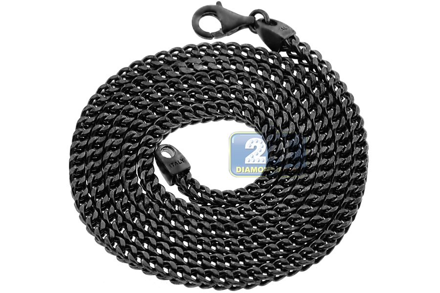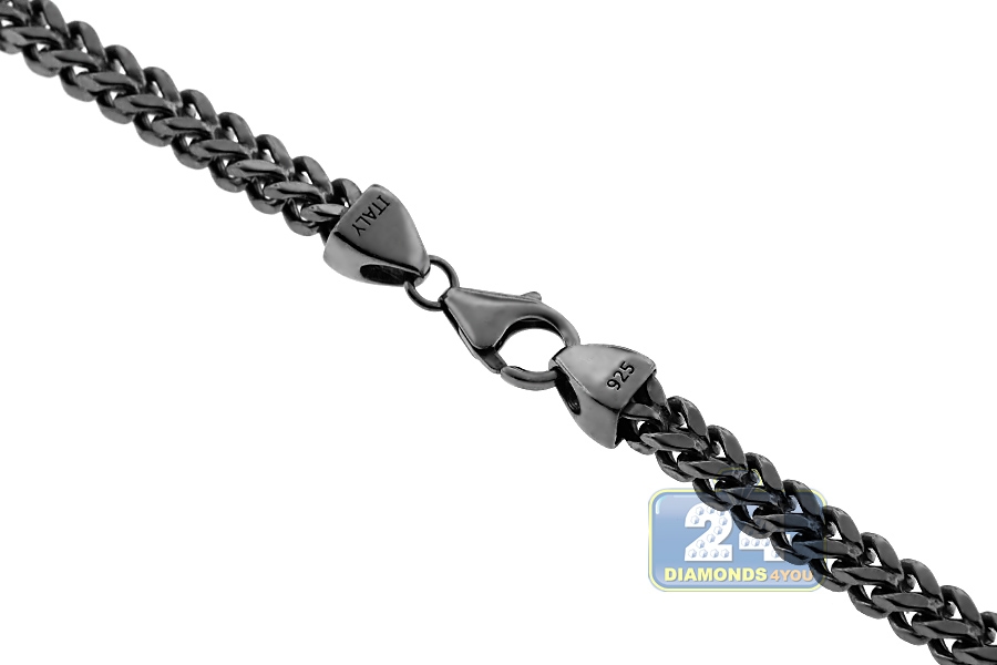Black Sterling Silver Hollow Franco Mens Chain 3 mm