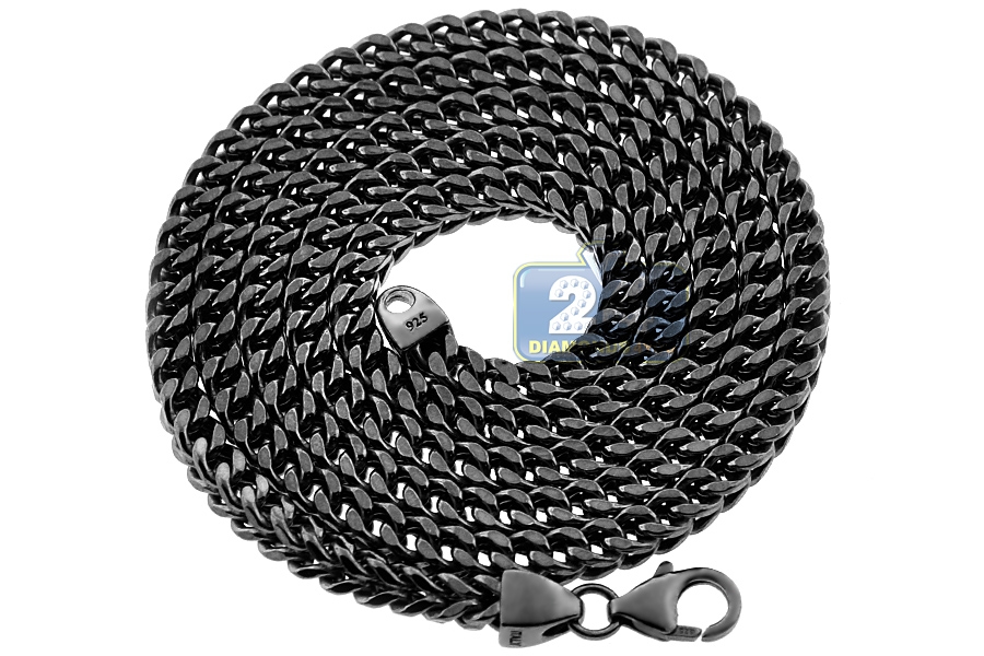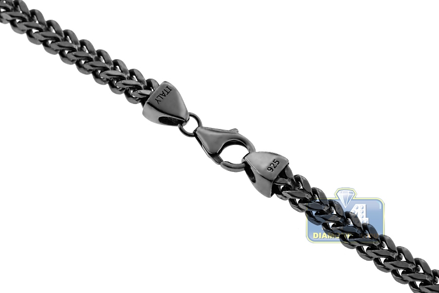 Black Sterling Silver Hollow Franco Mens Chain 4 mm