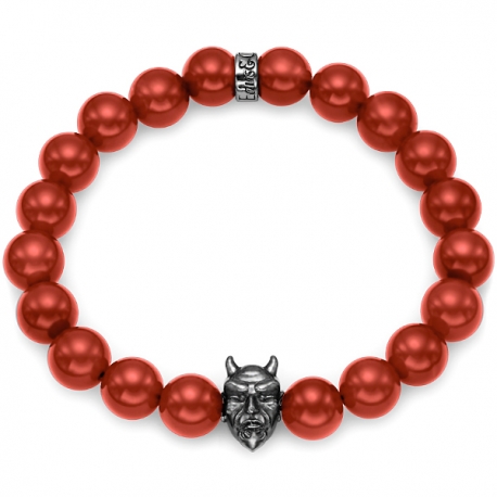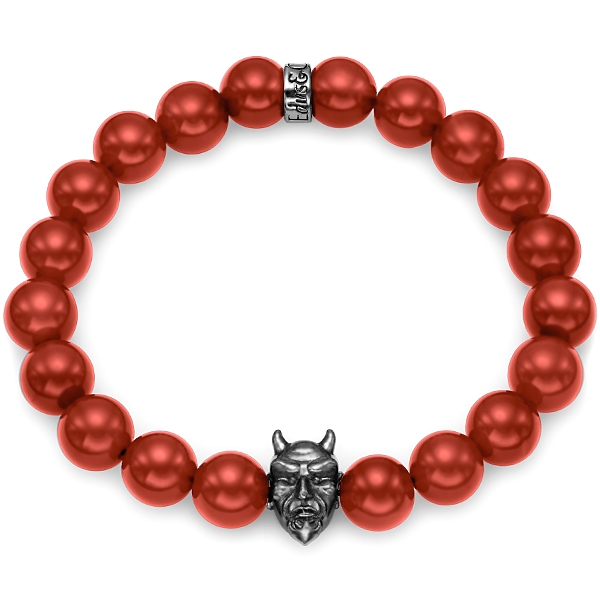 One-of-a-kind unisex bracelet with gemstone beads designed by Edus&Co. It features contrast reddish-brown carnelian beads of 8 mm set on durable stretch cord. The look is completed by fascinating devil head bead artfully handmade of solid sterling silver and plated with black rhodium. All Edus&Co. bracelets come with an individual serial number engraved. Add this unique piece to your jewelry collection!