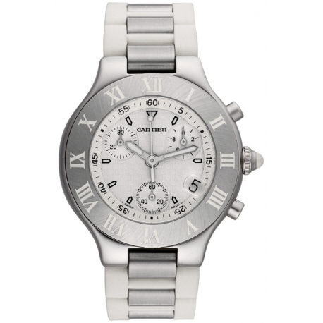 Men's Cartier Must 21 Series White Rubber & Stainless Steel Watch Style #W10184U2
