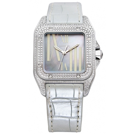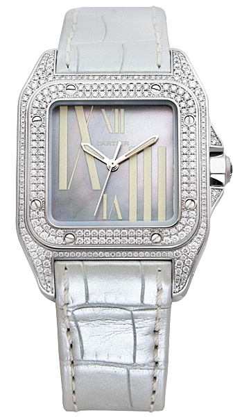 Cartier Santos 100 Unisex White Gold Diamond Watch WM503251