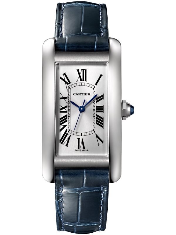 Cartier Tank Americaine Medium Model Steel Case Blue Alligator Leather Strap Women's Watch - Reference WSTA0017
