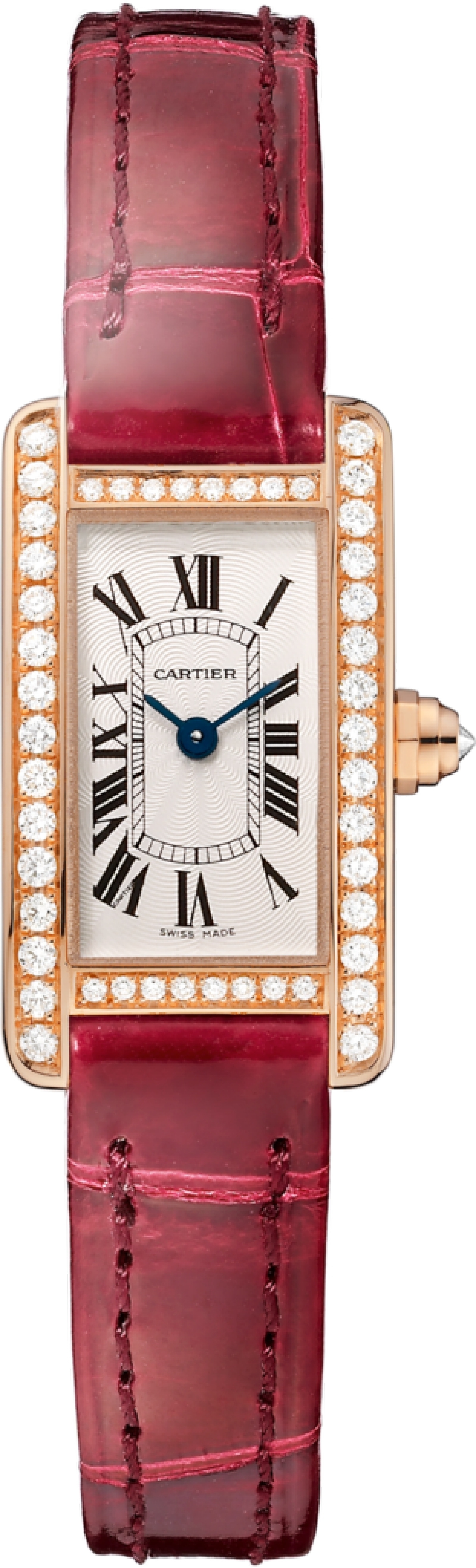 Cartier Tank Americaine Mini Model Diamond 18K Pink Gold Case Bordeaux Alligator Leather Strap Women's Watch - Reference WB710014