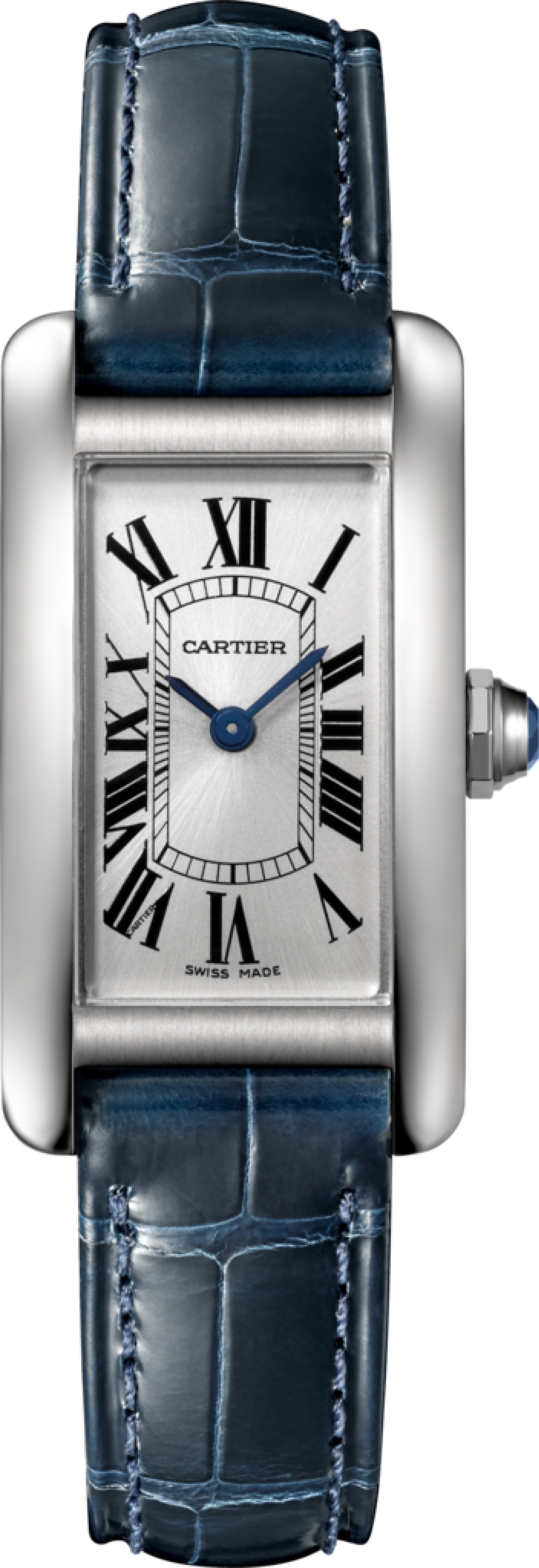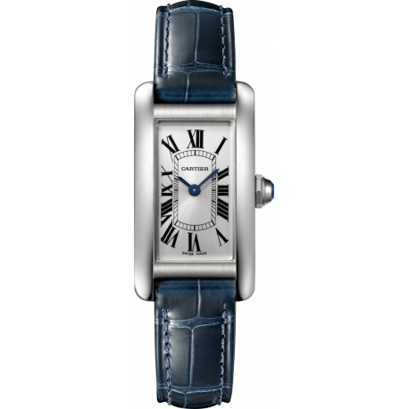 Cartier Tank Americaine Small Model Steel Case Blue Alligator Leather Strap Women's Watch - Reference WSTA0016