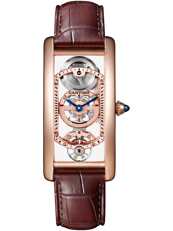 Cartier Tank Cintree Skeleton 18K Pink Gold Case Brown Alligator Leather Strap Men's Watch - Reference WHTA0008