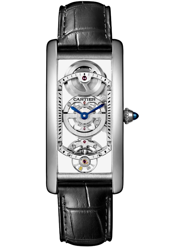 Cartier Tank Cintree Skeleton Platinum Case Black Alligator Leather Strap Men's Watch - Reference WHTA0009