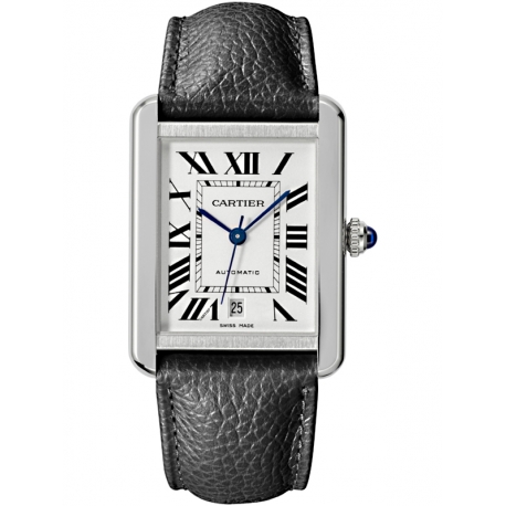 Cartier Tank Solo XL Model Steel Case Silver Dial Black Leather Strap Men's Watch - Reference WSTA0029