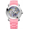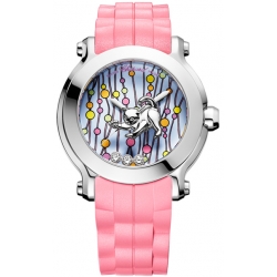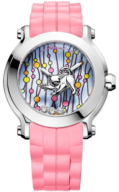 Women's Chopard Happy Animal World Collection Crouching Cat Stainless Steel Case Pink Rubber Band Watch Reference #128707-3001. 150th Anniversary Animal World Edition.