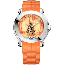 Women's Chopard Happy Animal World Series Tiger Dial Stainless Steel Case Orange Rubber Strap Watch Model #128707-3003. 150th Anniversary Animal World Edition.