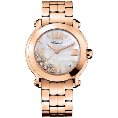 Women's Chopard Happy Sport II Series Round Shaped 18K Rose Gold Bracelet Watch Reference #277472-5002.