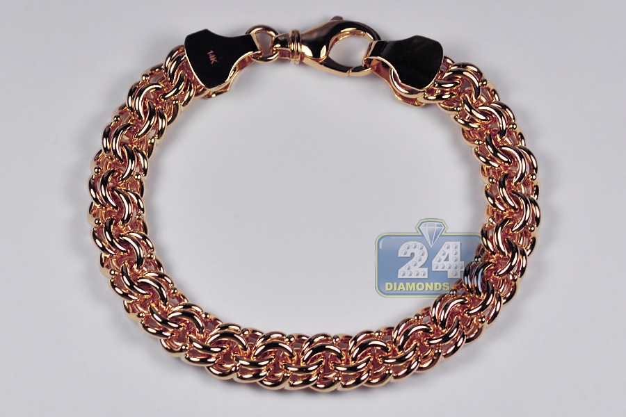 Custom 14K Rose Gold Russian Bismark Mens Bracelet 10 mm