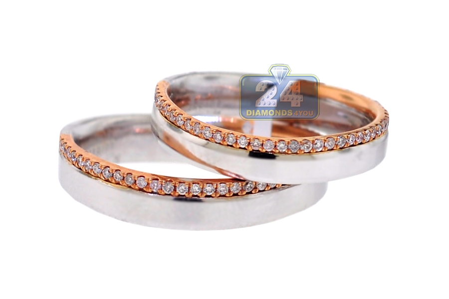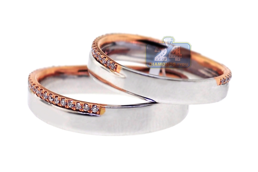 Diamond Bridal Bands His Her Set 18K Two Tone Gold 0.38 ct