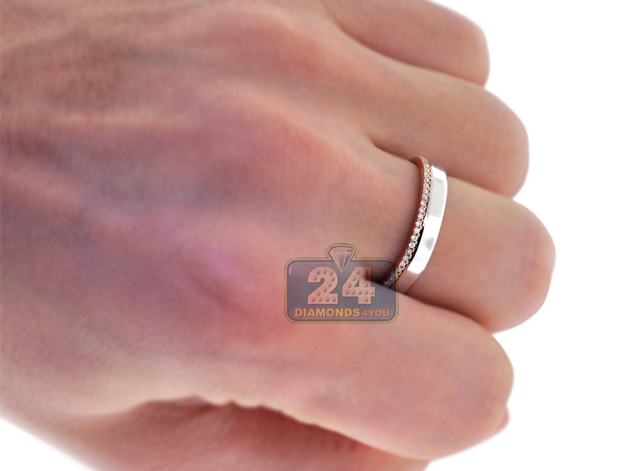 This stylish wedding bands for the bridal collection set a tone for romance and glamour! Uniquely created from 18k gold of rose and white colors, they are encrusted with 0.38 carat of round brilliant-cut white diamonds. Celebrate your life together with these men's and women's rings!