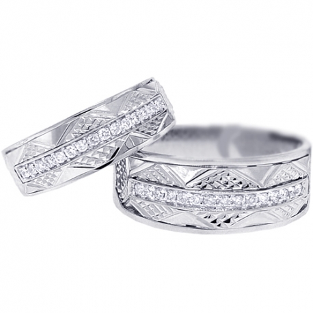 Our wedding bands set for bride and groom has a splendid look they will love! Ably created from cool 18k white gold, the rings are accented with 0.33 carat of white round brilliant-cut diamonds. This bridal set of two rings has a stylish design you will treasure forever! The rings can be purchased separately.