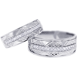 Diamond Wedding Bands Set for Him Her 18K White Gold 0.33 ct