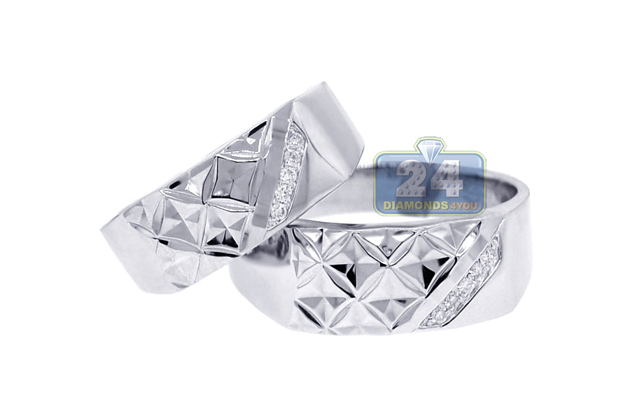 Diamond Wedding Rings His Hers Set 18K White Gold 0.10 ct