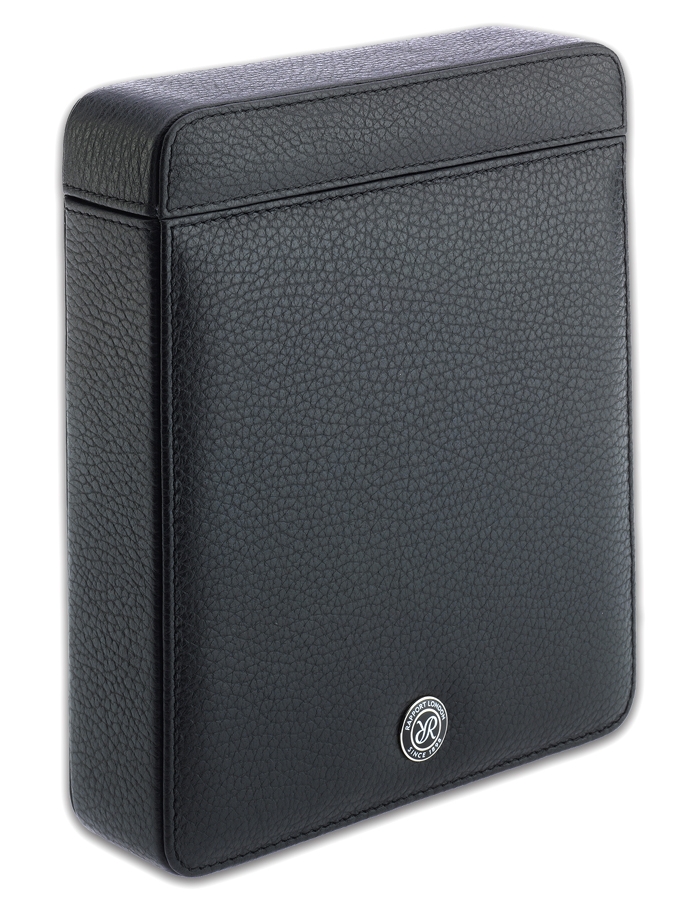 Stylish design and durability come together in this black double watch slipcase Berkeley D170 artfully created by Rapport London. This travel case is designed to hold 2 timepieces securely and separately. Its exterior finish features genuine black grained leather with matching black stitch. The inner compartments are lined with soft black velveteen that guarantees luxurious feel. The unit measures 185 mm in width, 160 mm in depth and 40 mm in height. This sturdy storage box is a reliable companion when you travel! We are an official dealer of the brand. So you get factory warranty and free domestic shipping for this item.