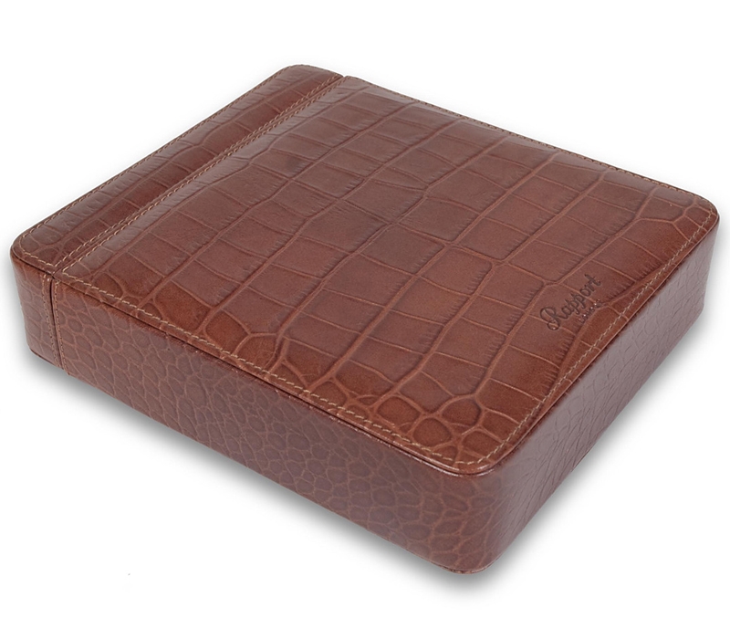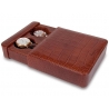 You've found the ideal way to store and travel with your valuables - this brown double watch slipcase L106, a member of Portman series designed by Rapport London. This storage case is made to hold 2 timepieces securely and separately. Its exterior finish features genuine brown leather embossed in crocodile pattern with matching brown stitch. The inner compartments are lined with soft brown velveteen that guarantees luxurious touch. The unit measures 185 mm in width, 160 mm in depth and 40 mm in height. This sturdy travel box is perfect for those who appreciate fine things! We are an official dealer of the brand. So you get factory warranty and free domestic shipping for this item.