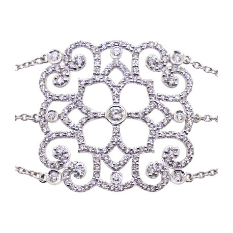 Express your love of beauty and luxury with this women's diamond bracelet! It's professionally crafted in lustrous 18k white and rose gold, and features shiny finish. The jewelry piece is encrusted with 1.93 carat of icy white round brilliant-cut genuine diamonds. Our floral link bracelet also measures 7.25 inches in length, 29 mm in width; and secured by comfortable lobster claw. Follow your passion with this breathtaking diamond bracelet!