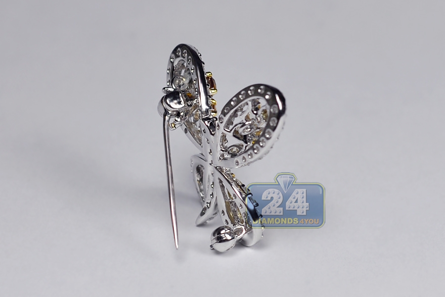 14K Gold 2.84 ct Fancy Diamond Butterfly Brooch Womens Necklace