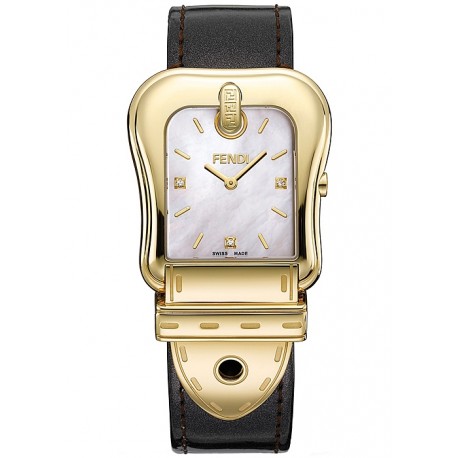 Fendi B. Fendi Yellow Gold Case Brown Leather Womens Diamond White Mother-of-Pearl Dial 33 mm Watch - Reference F380414521D1
