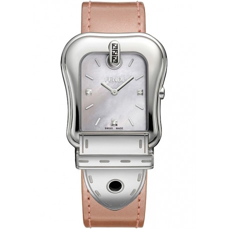 Fendi B. Fendi Steel Case Coral Leather Strap Diamond White Mother-of-Pearl Dial Women's Watch - Reference F380014571D1