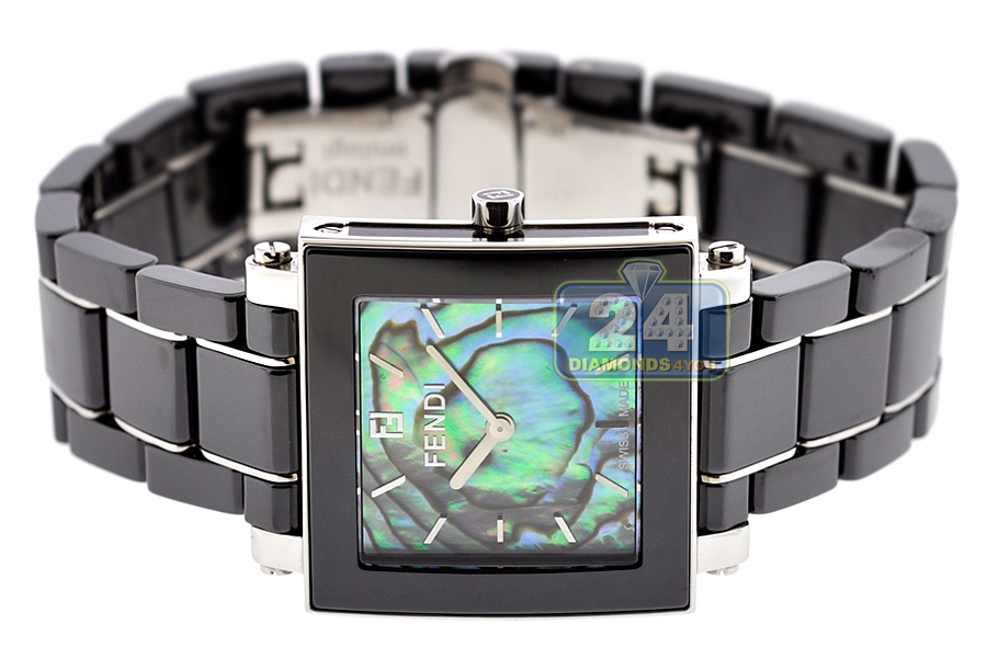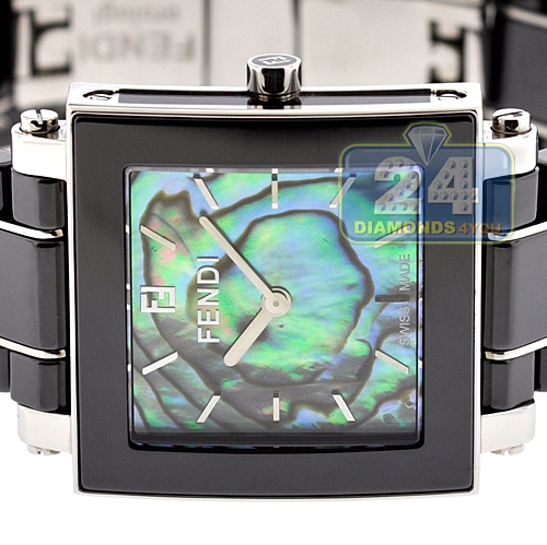 Fendi Black Ceramic Square Abalone Dial Womens Watch F625110