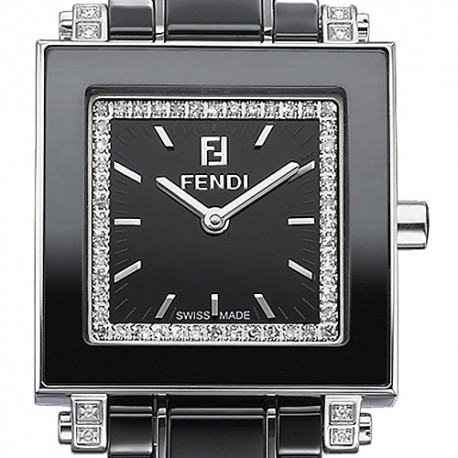 Fendi Black Ceramic Square Diamond 25 mm Watch F621210DDC