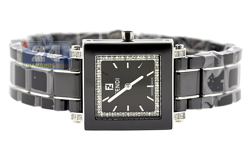 Fendi Black Ceramic Square Diamond Dial Bracelet 25 mm Women's Watch - Reference F621210DDC