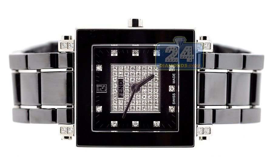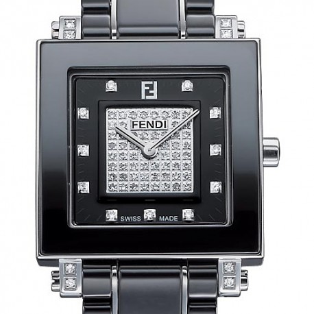 Fendi Black Ceramic Square Diamond Womens Watch F625110DPDC