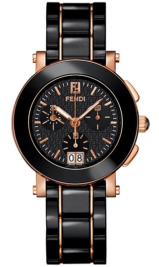 Fendi Black Ceramic Round Shape Chronograph Rose Gold Case Bracelet 38 mm Women's Watch - Reference F671110