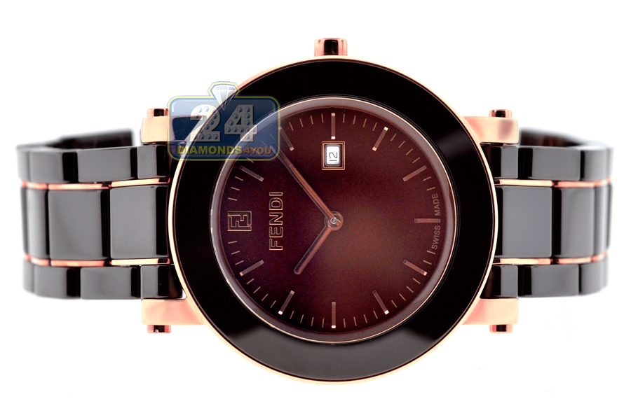 Fendi Brown Ceramic Round Rose Gold Case 38 mm Watch F684120