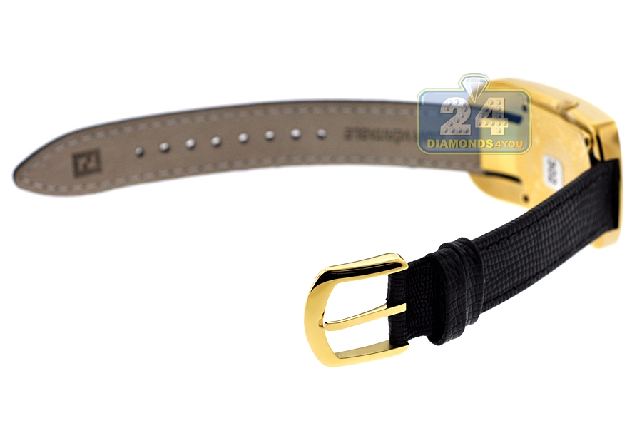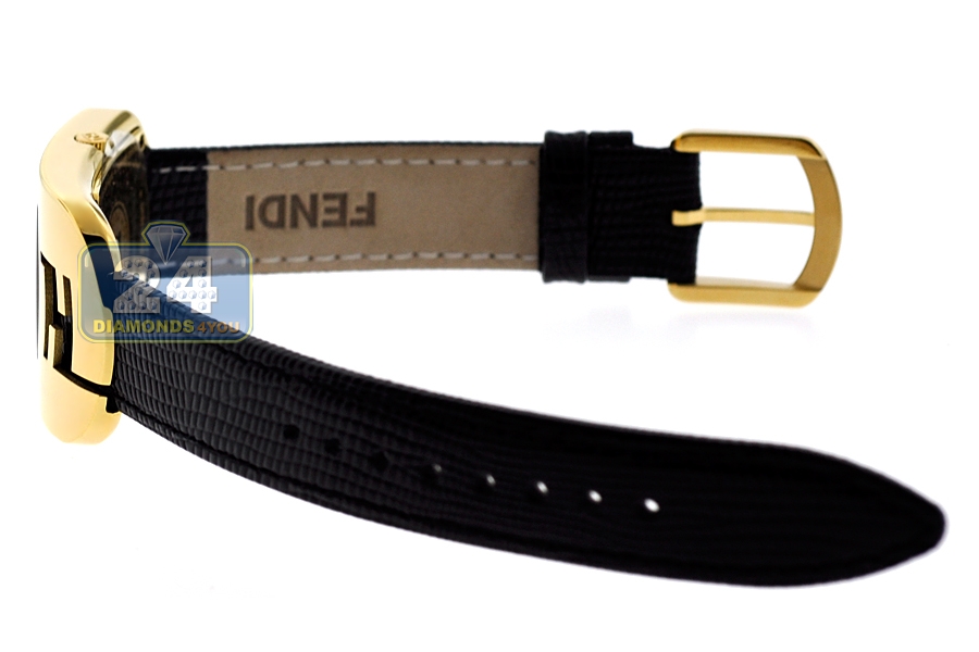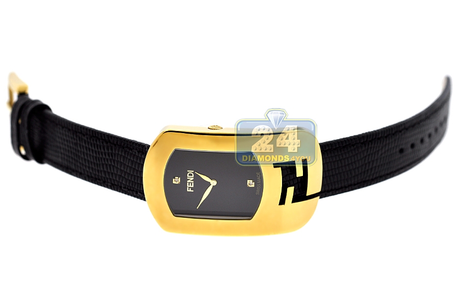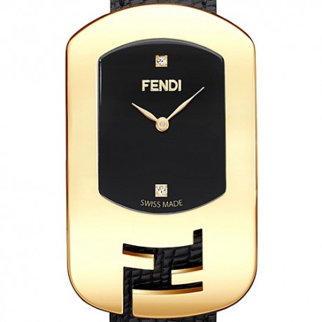 Fendi Chameleon Medium Diamond Black Dial Leather Strap Yellow Gold Case 29 mm Women's Watch - Reference F300431011D1