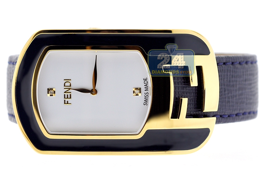 Fendi Chameleon Medium Blue Enamel Yellow Gold Case Diamond White Dial 29 mm Women's Watch - Reference F313434031D1