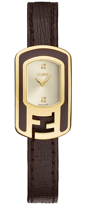 Fendi Chameleon Small Brown Enamel Yellow Gold Case Diamond Champagne Dial Leather Strap 18 mm Women's Watch - Reference F312425021D1