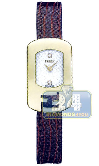 Fendi Chameleon Small Diamond White Dial Brown Leather Strap Yellow Gold Case 18 mm Women's Watch - Reference F300424021D1